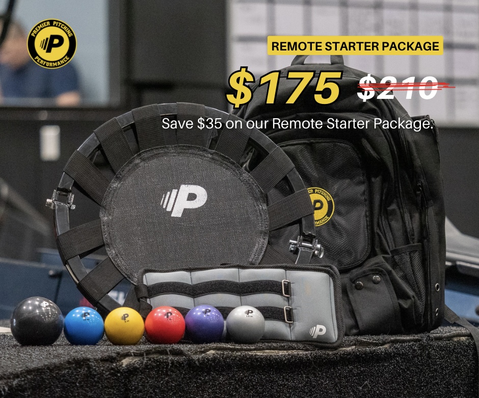 The Remote Starter Package consists of 1 wrist weight set, 1 set of plyo training balls, 1 mini rebounder, and 1 backpack.